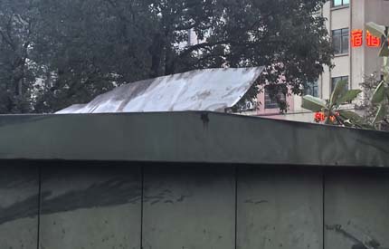 An outdoor box-type substation from a certain manufacturer in Yangjiang, with top damage (photo taken after the typhoon).