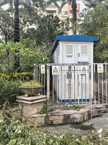 The Haihong Electrical box-type substation on the left remains intact (photo taken after the typhoon).